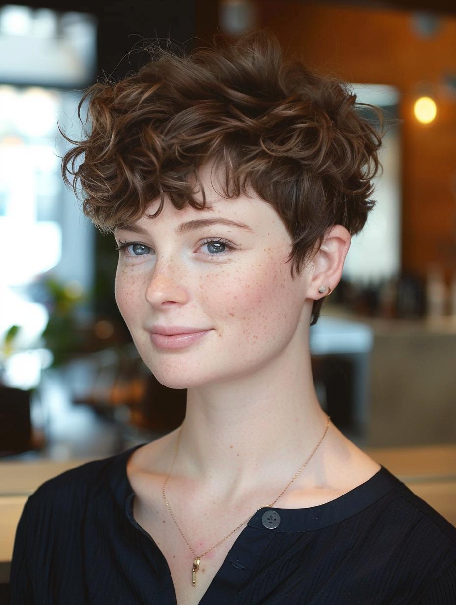 When considering short curly haircuts for women, it’s essential to think about how the cut will frame your face. Women with round faces can benefit from styles that add height and volume at the crown, such as a layered pixie or a voluminous bob. These styles can elongate the face and accentuate your curls beautifully. Remember to pin your favorite looks from our Pinterest collection to show your stylist exactly what you envision.