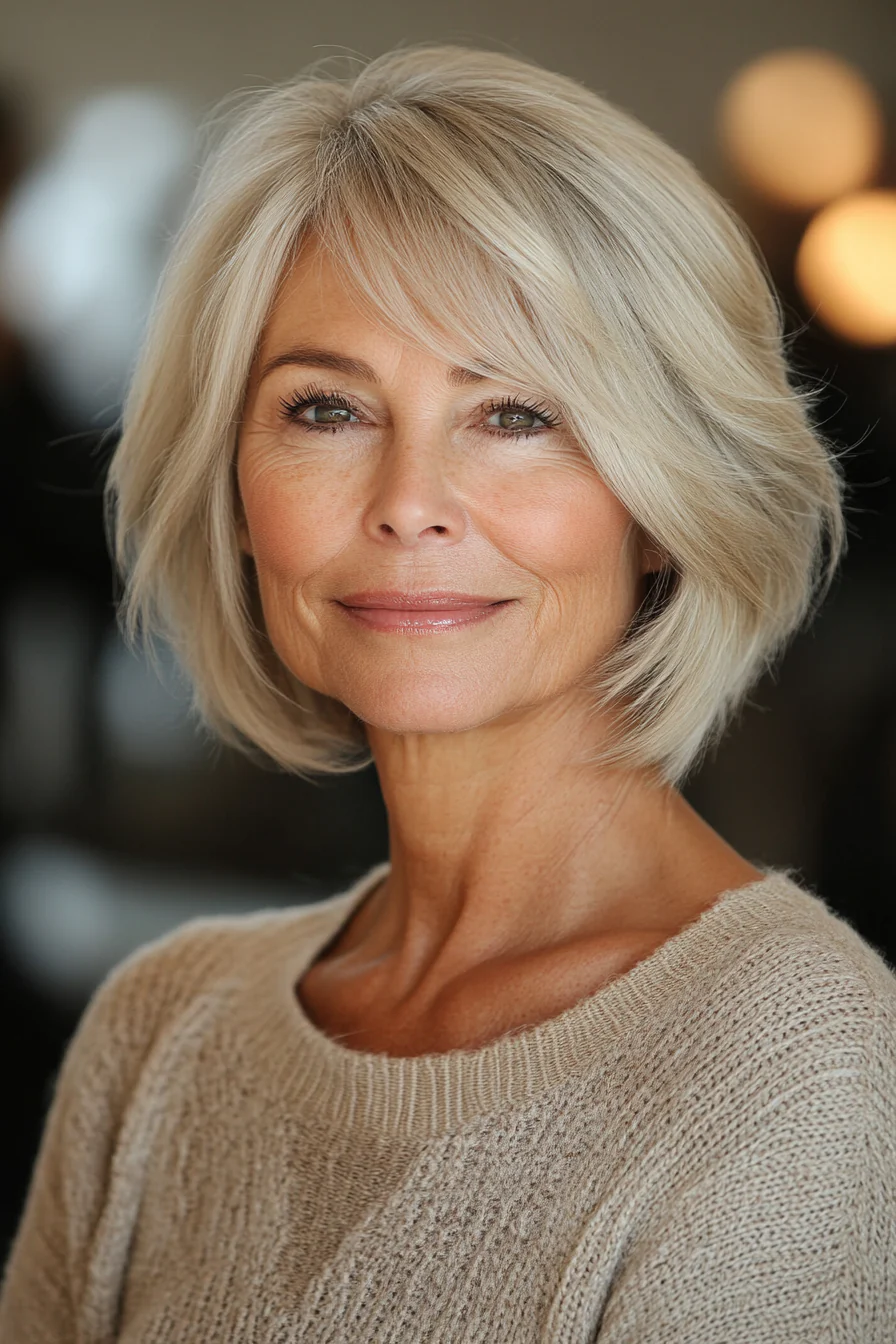 Designed for those who prefer a fuss-free style, this bob features soft, swooping layers that require minimal styling. Ideal for fine or thinning hair, a cool blonde or soft grey color can complement the look.
